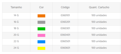16G x 45mm ,18G x 32mm ,20G x 32mm ,22G x 25mm ,24G x 19mm |