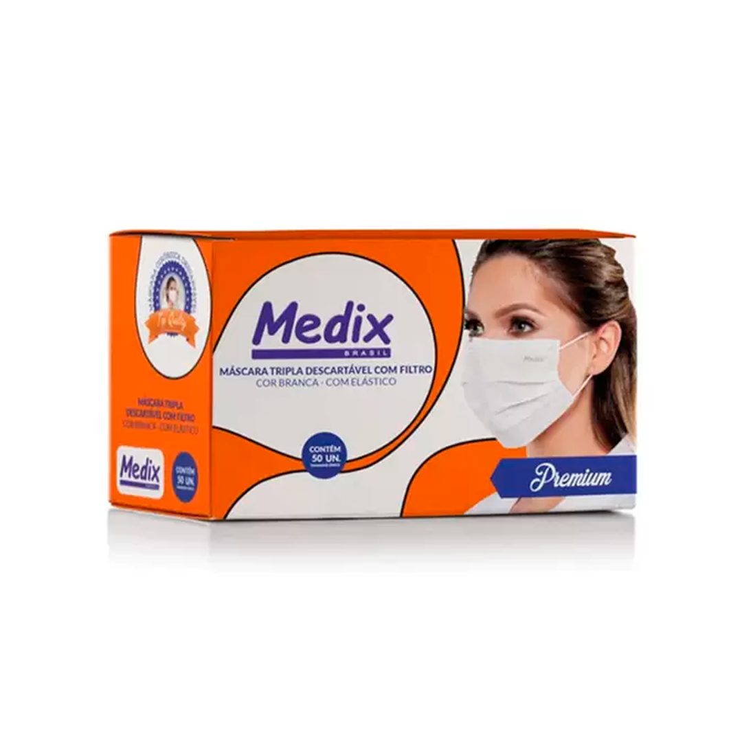 A Máscara Descartável Medix Brasil é descartável, não estéril, possui 3 camadas sendo a primeira camada de polipropileno não tecido, com camada intermediária de papel filtro melt blown (BFE: =95%) e terceira camada de polipropileno não tecido de 25g. Tamanho 17,5×9,5cm (CxL). Uso único, ecologicamente sustentável, biodegradável, respirável e macio, sem látex e fibra de vidro, possui clipe de nariz ajustável. Anti poeira, anti bacteriano, anti vírus, anti pólen, anti poluição atmosférica, anti gotículas, etc. Destinado a exames e procedimentos gerais, para a proteção de pacientes e profissionais de saúde ou outras áreas, utilizada para o conforto e higiene das vias respiratórias em trabalhos que requeiram barreiras filtrantes, de uso único, sendo proibido reprocessar e necessário descartar após o uso.